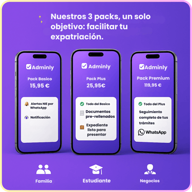 Adminly le acompaña en sus trámites administrativos en España. Aproveche nuestros servicios 100% en línea, adaptados a expatriados, para facilitar la obtención de su NIE y otros procedimientos.